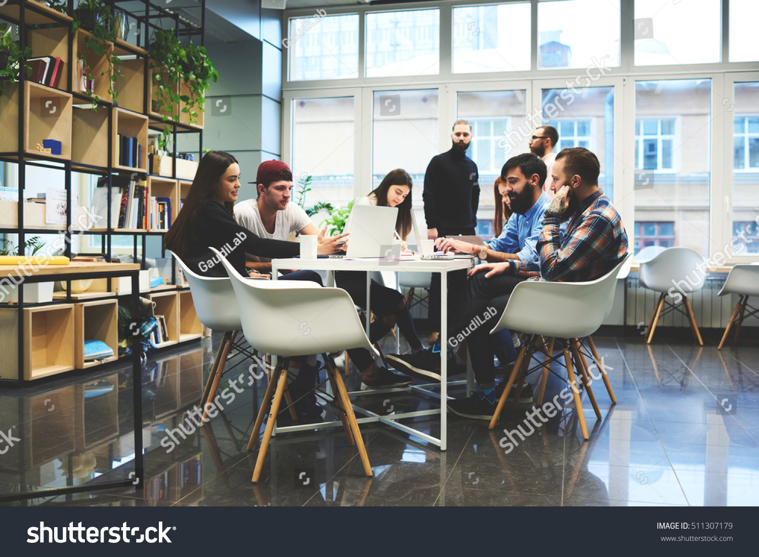 stock-photo-group-of-casually-dressed-businesspeople-discussing-ideas-in-the-office-creative-professionals-511307179